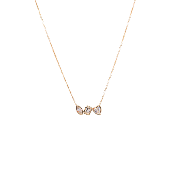 Collar con 3 LAB diamonds en bisel. Corte de los diamantes: marquise, emerald y heart.