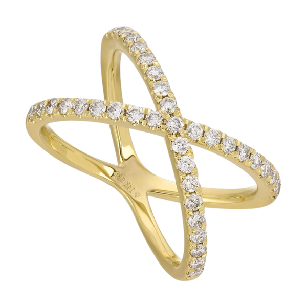 Anillo de oro amarillo 14k con diamantes 0.60CTD estilo cruzado.